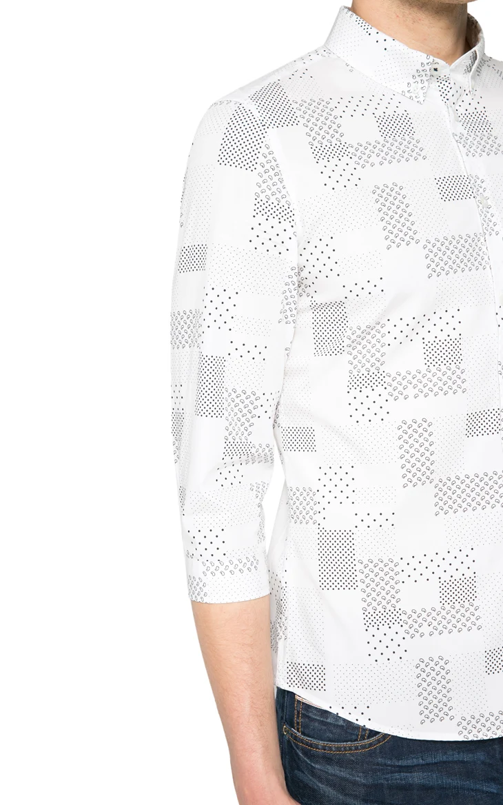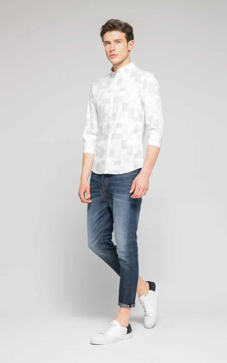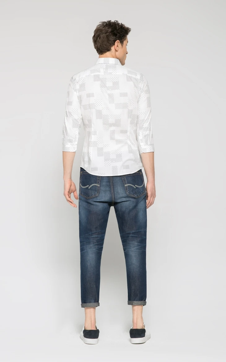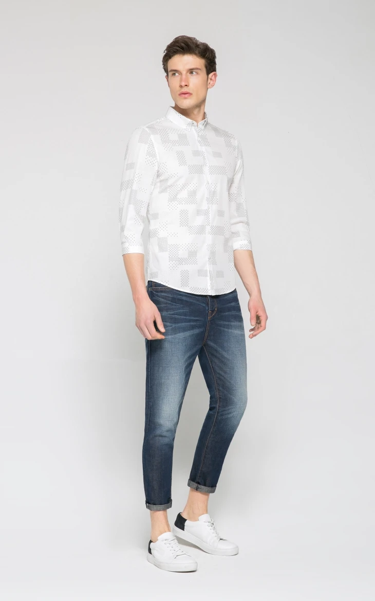 Jack & Jones Brand 2018 NEW COTTON punk style plaid male slim sailor collar three quarter sleeves casual shirts| 216231509