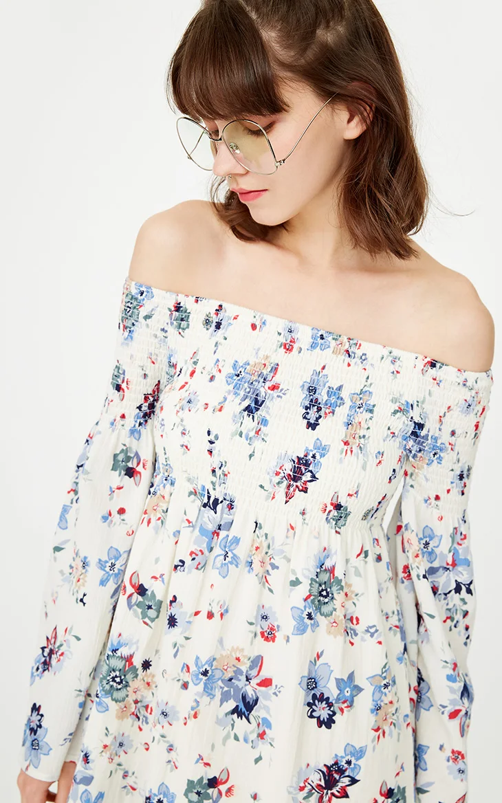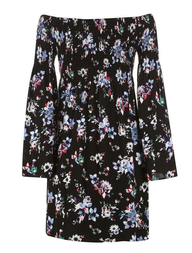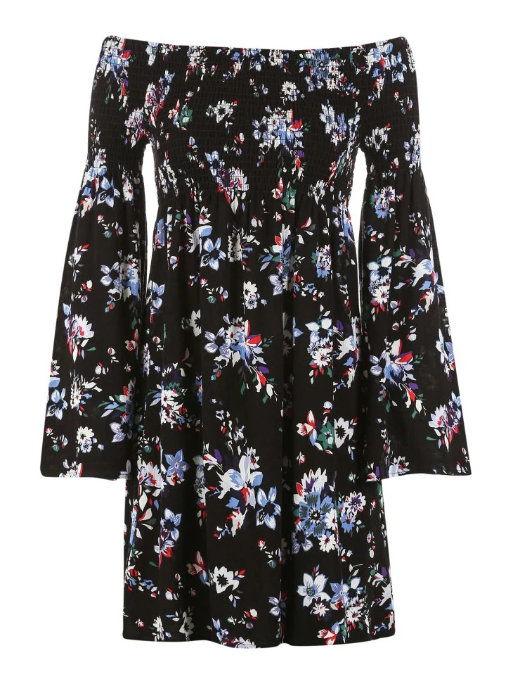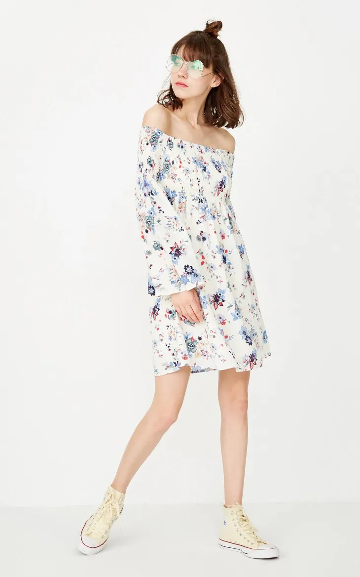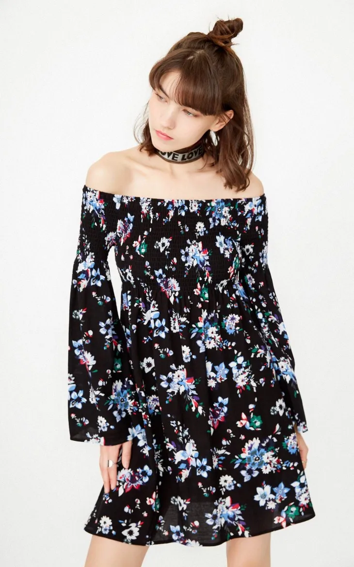 ONLY Brand 2018 NEW fashion sweet comfortable slash neck flare sleeves floral female dresses|117307531