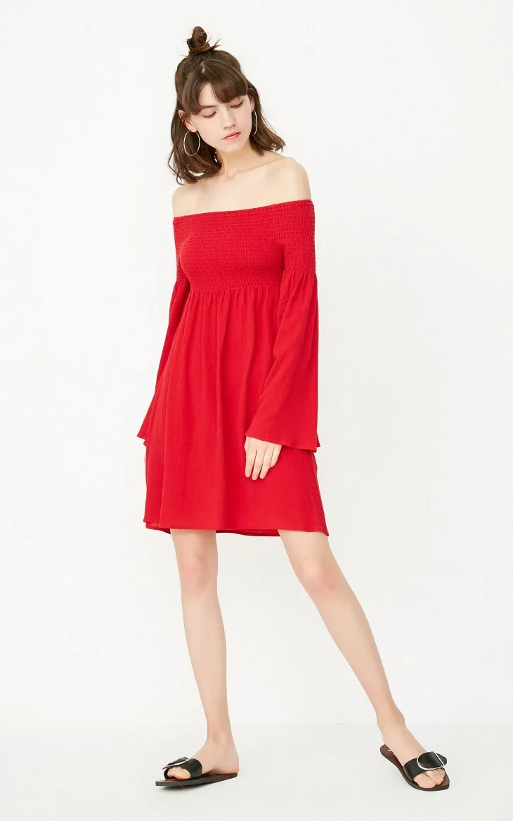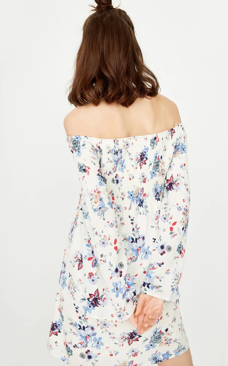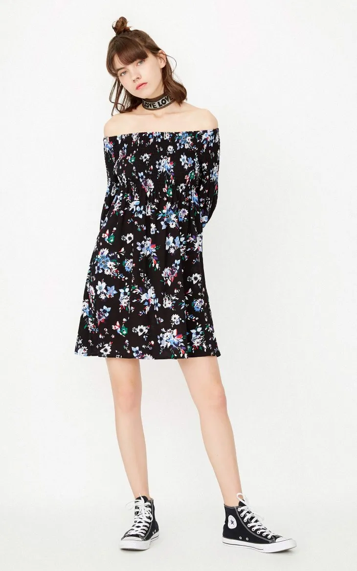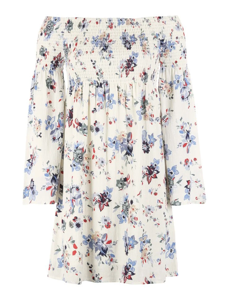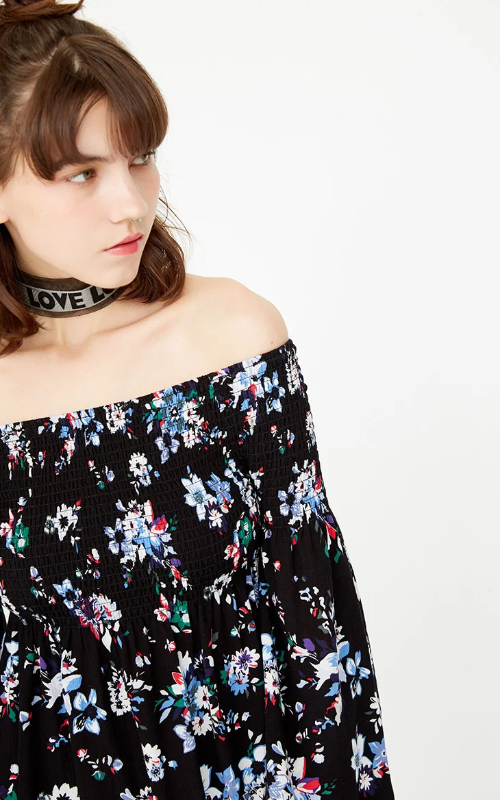 ONLY Brand 2018 NEW fashion sweet comfortable slash neck flare sleeves floral female dresses|117307531
