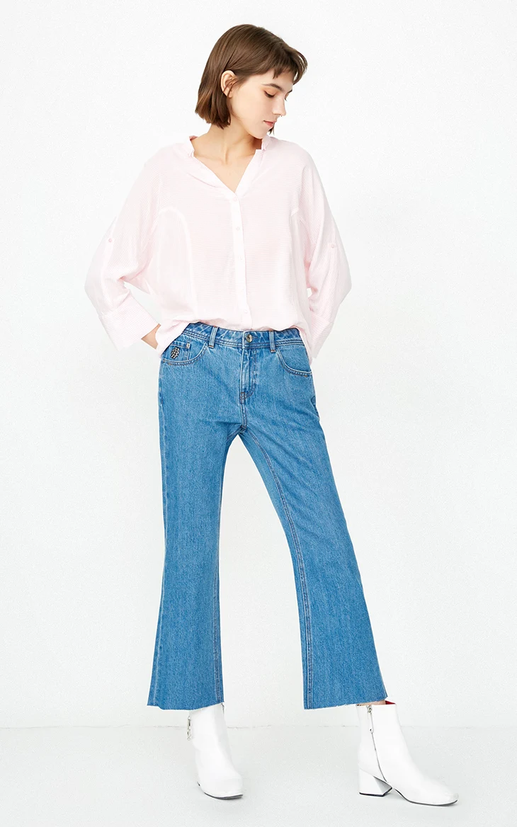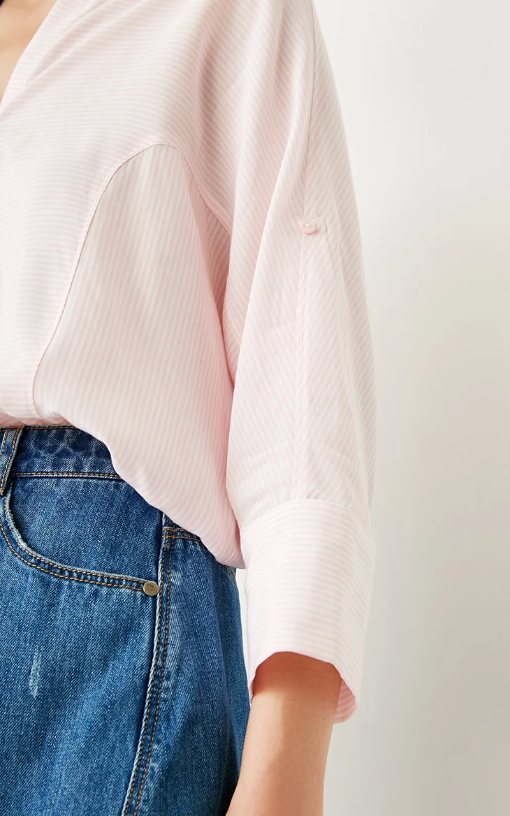 ONLY Brand 2018 NEW loose striped single-breasted V-Neck nine-quarter sleeve female shirts |117305516