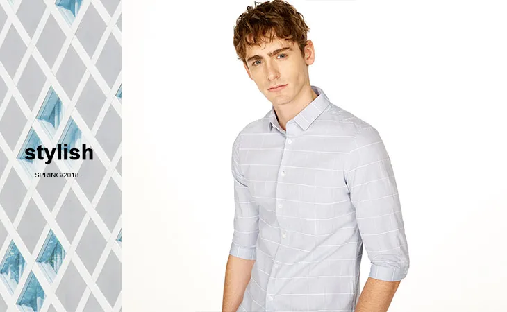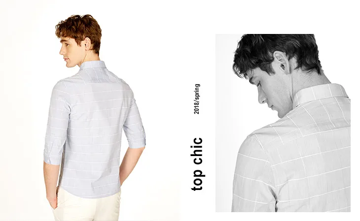 SELECTED Brand New casual 100%cotton stripes slim fit three quarter sleeves shirts men |418231520