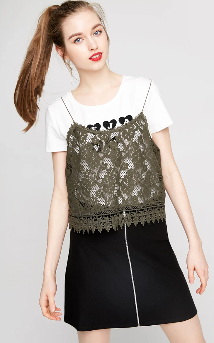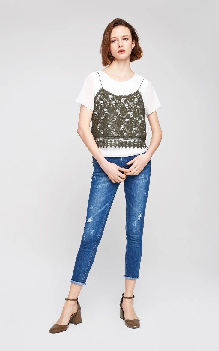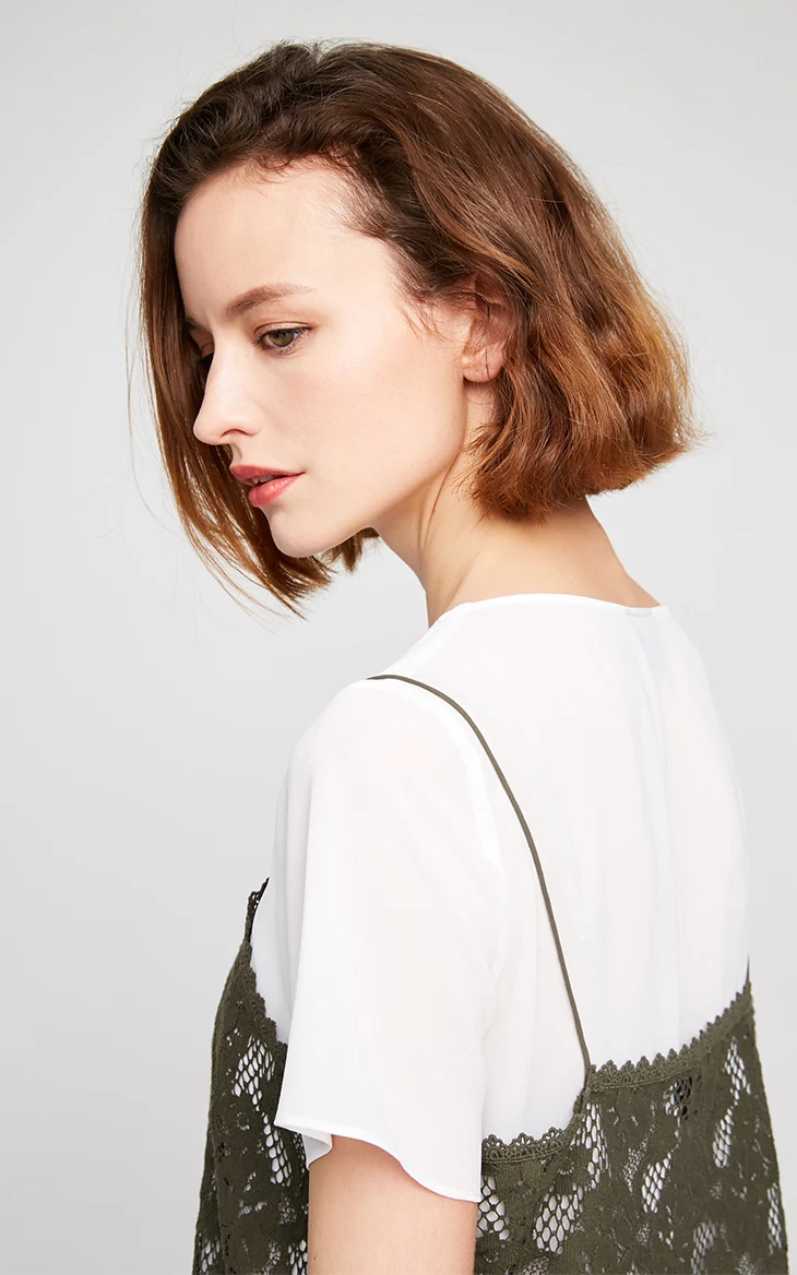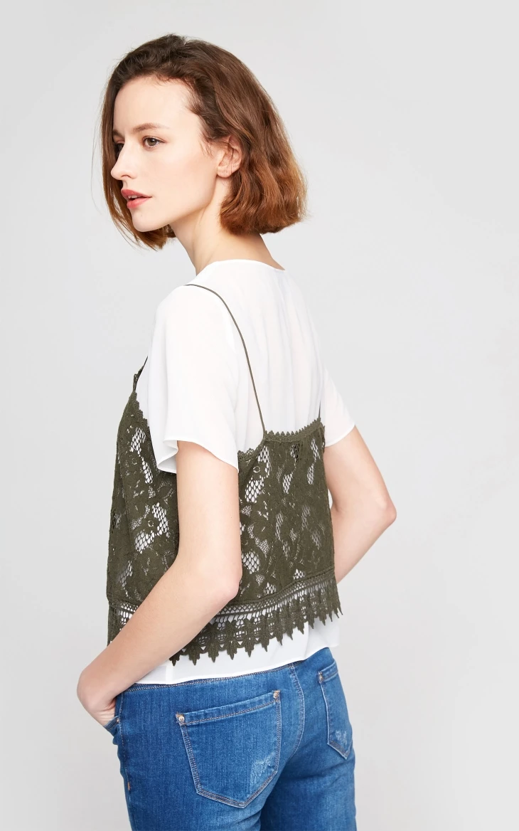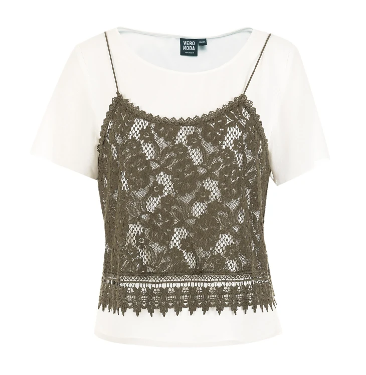 Vero Moda Brand 2018 NEW cotton lace sun-top loose O-Neck OL-style pullover women shirt |317341513