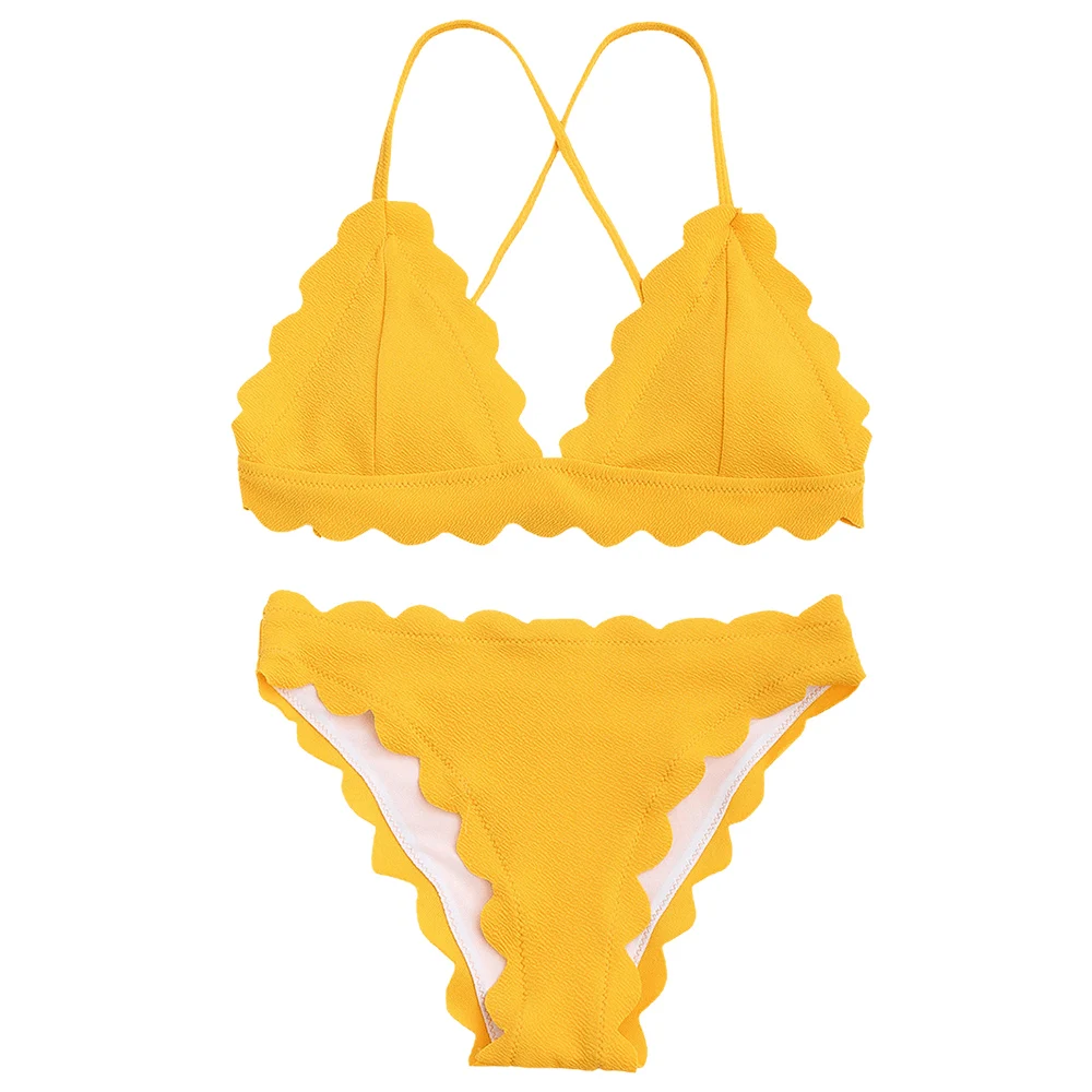 ZAFUL 2019New Scalloped Criss-cross Bikini Set Swimwear Women Swimsuit Spaghetti Straps Solid Color Summer Beach Bathing Suit
