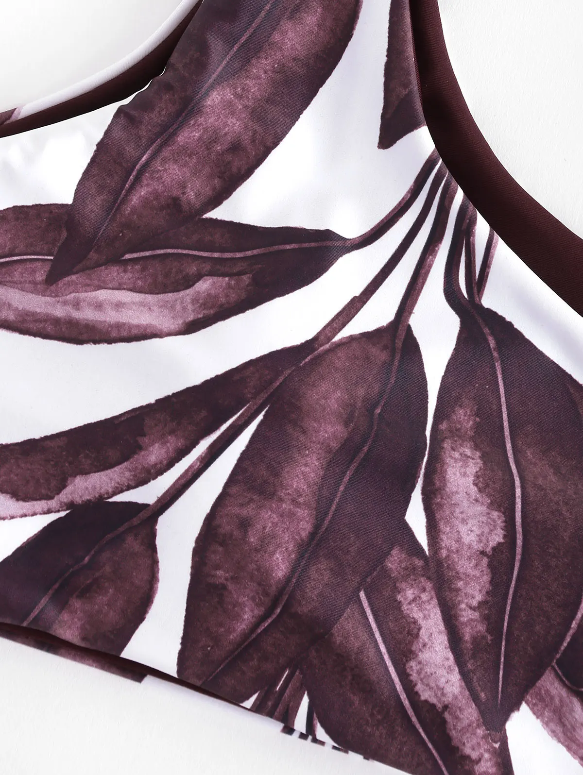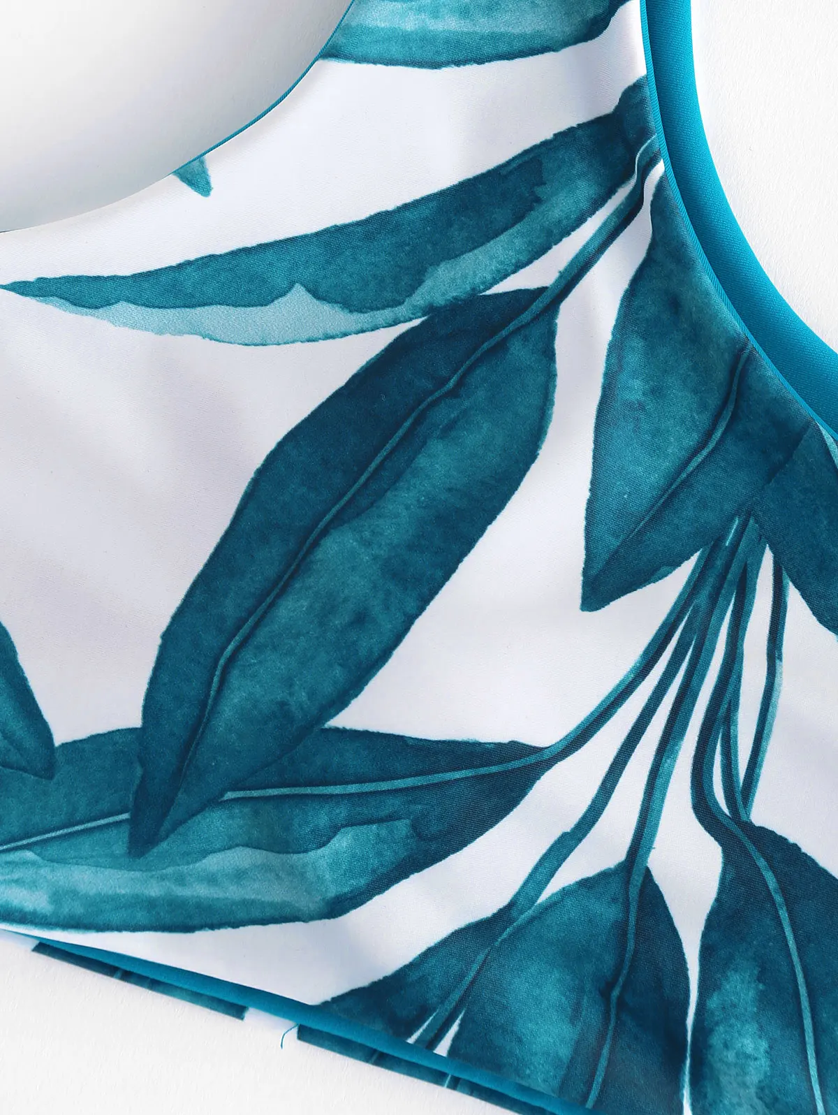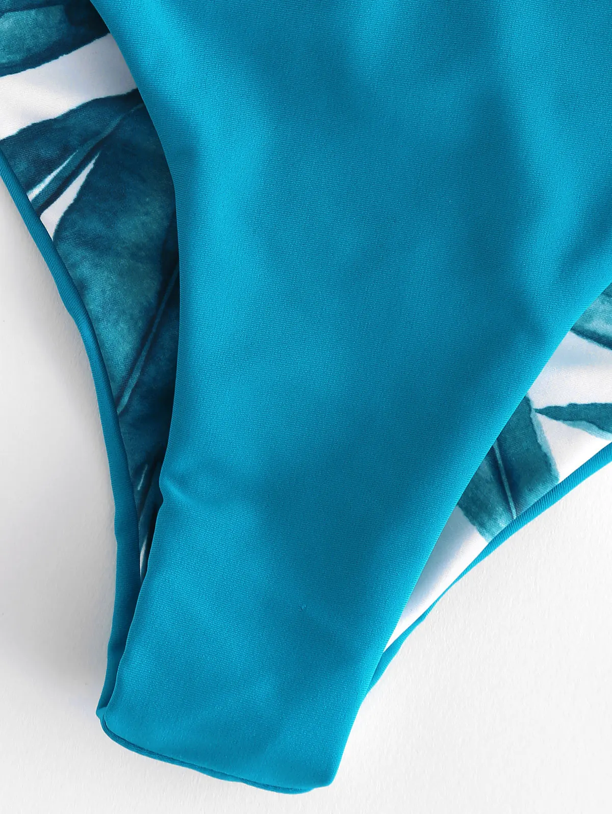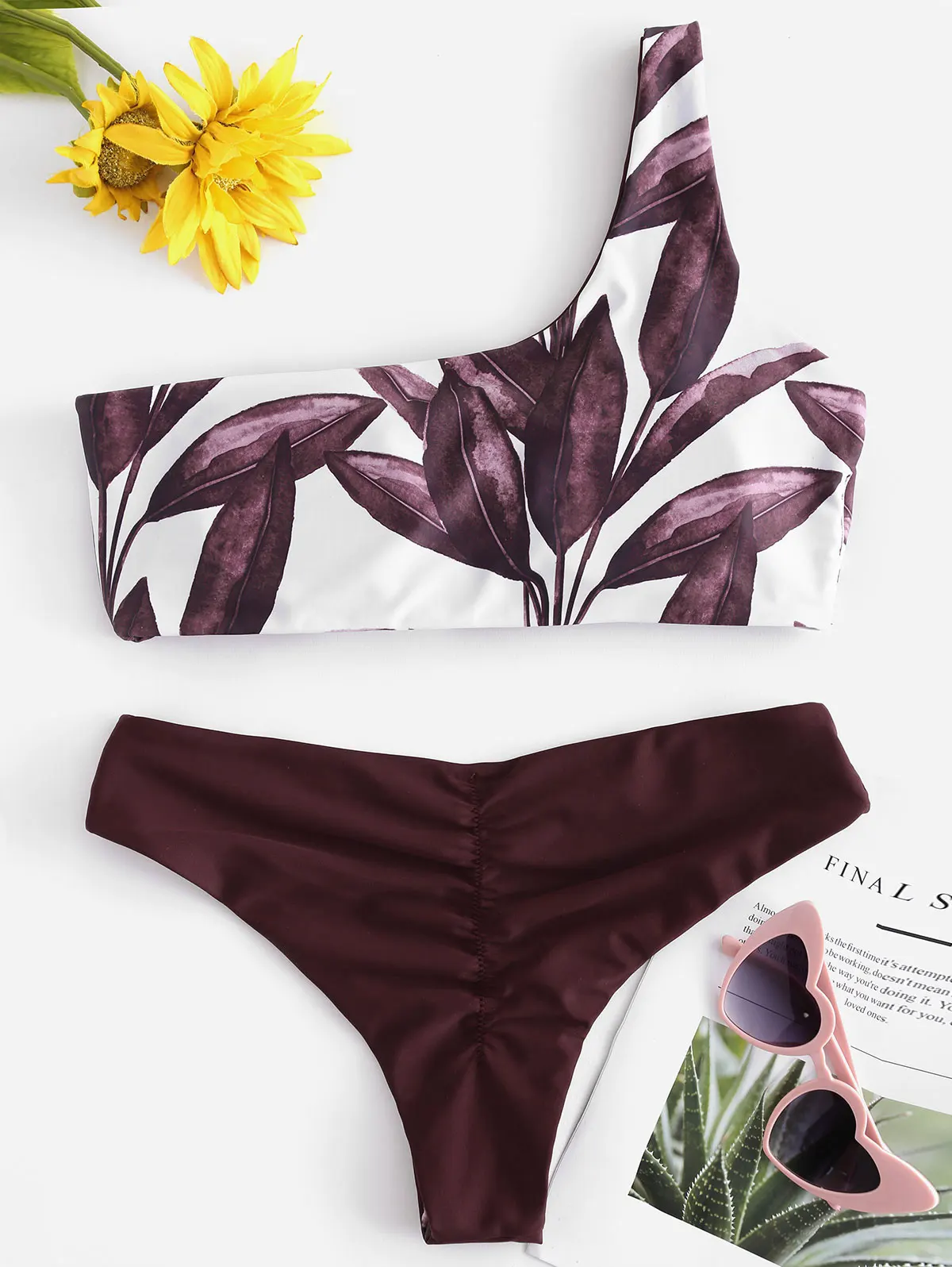 ZAFUL One Shoulder Leaves Print Bikini Sexy Bathing Suit Push Up Swimming Suit Swimwear Beachwear for Women
